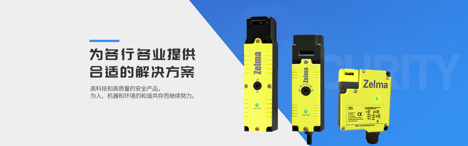 澤邇瑪(Zelma):名字寓意神圣的保護,正如Zelma名字所言,保護工業領域設備的安全,可靠運行是我們的責任。公司以超前的意識進行管理,鼓勵創新。在當今自動化技術領域,創新的企業精神造就了典型的澤邇瑪(Zelma)式的管理模式。我們的產品不僅適用于標準的安全功能,如急停、安全門,安全地毯和雙手控制,而且能夠為各種應用提供合適的解決方案。產品應用不僅包括傳統的自動化行業,如汽車制造業、食品加工業等,同時也包括機場、劇院、游樂場等非自動化的行業。澤邇瑪(Zelma)除了為各行各業提供安全解決方案之外,我們還提供咨詢服務,這當中包括工廠評估、風險評估、安全理念、安全設計、安全驗證及CE認證等方面的內容,幫助客戶更輕松也更專業得獲得機械安全。澤邇瑪(Zelma)目標就是要為客戶提供最優質的產品和服務,展望未來,我們將繼續研發高科技和高質量的安全產品,為人、機器和環境的和諧共存而繼續努力。...